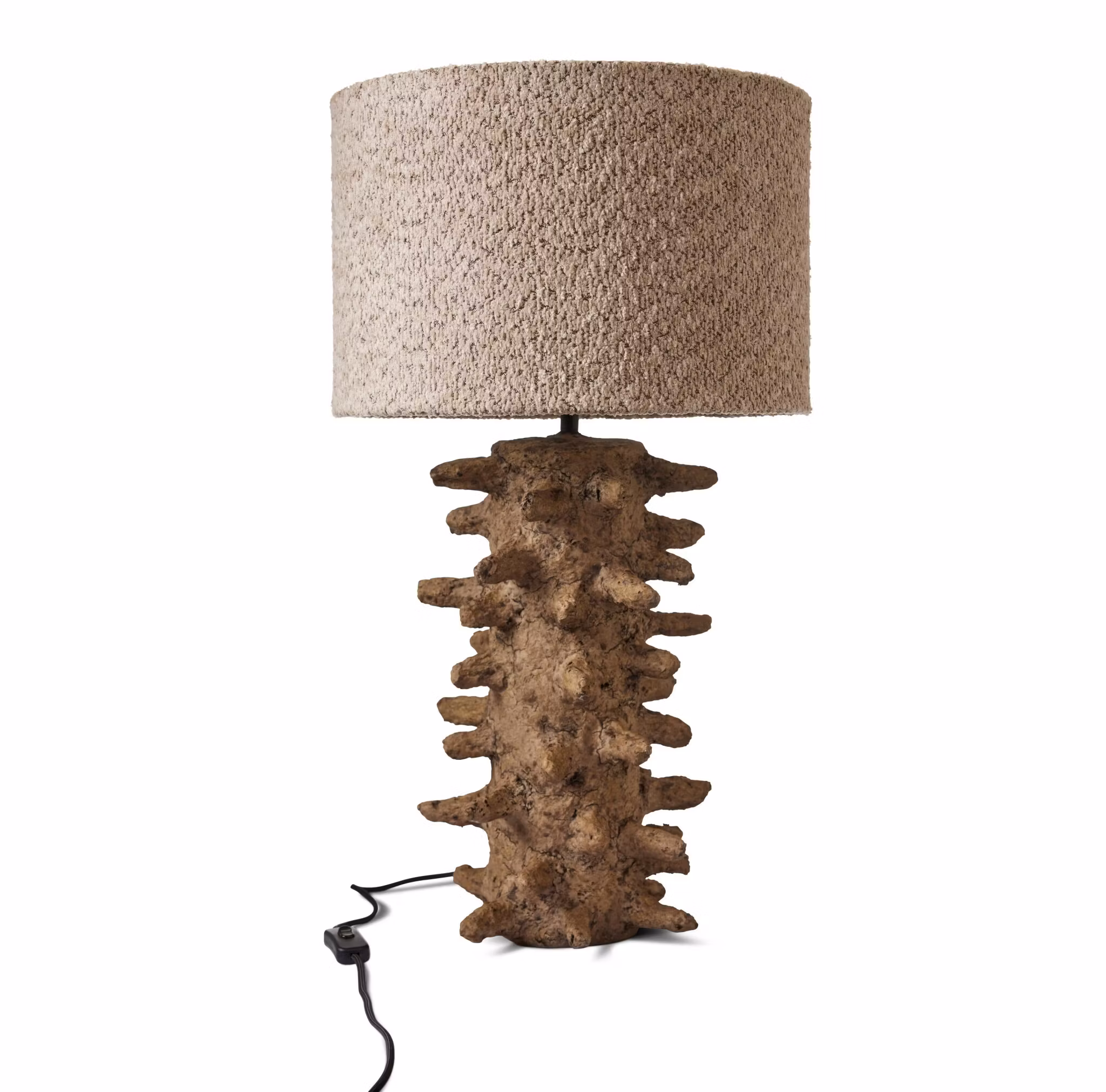 Foresta, en lampa som kombinerar konstnärlig design med naturliga element på ett unikt och fängslande sätt. Lampskärmen är gjord av polyester och lampfoten, som är tillverkad av papier-maché påminner om ett träd med sin taggiga och texturrika design, vilket gör Foresta till ett verkligt konstverk. Foresta är inte bara en ljuskälla utan även ett statement-piece som omedelbart drar till sig uppmärksamhet och beundran. Dess unika form och spännande utseende gör den till ett samtalsämne vid varje sammankomst, och den sticker verkligen ut i vilket rum den än placeras. Den innovativa designen och det naturliga materialet ger Foresta en särskild charm som förhöjer och kompletterar inredningen. Med Foresta i ditt hem tillför du inte bara belysning, utan också en unik och intressant detalj som skapar en varm och inbjudande atmosfär.