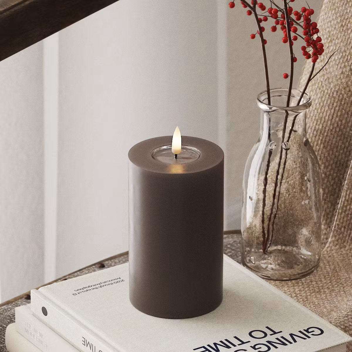 Skapa en varm och inbjudande stämning med detta stilrena LED-blockljus från DeluxeHomeart. Ljuset har en realistisk design med en förstärkt topp och WETLOOK™-effekt, vilket ger ett äkta utseende. Utrustat med den patenterade 3D REAL FLAME™-tekniken för en verklighetstrogen ljuslåga. Färg: Mocca Material: Paraffinvax och resin Mått: 7,5 x 12,5 cm (exklusive flamman på 2 cm) Batteri: 2 x AA (ingår ej) Batteritid: 400+ timmar