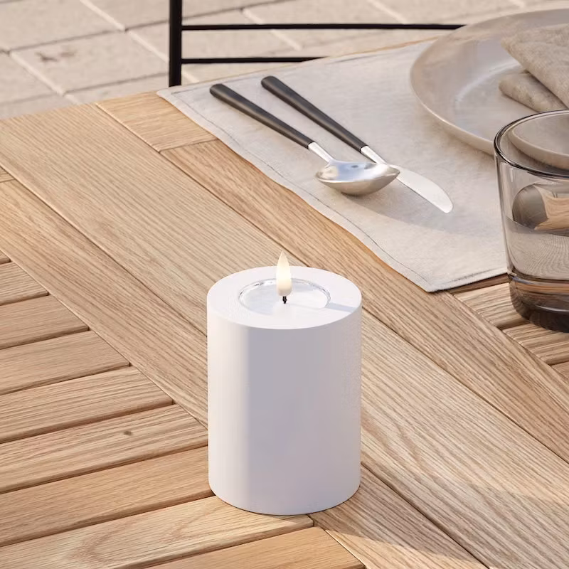 Detta LED blockljus i vit färg är designat för både inomhus- och utomhusbruk, och erbjuder en säker, långvarig ljuskälla utan öppen låga. Tillverkat i hållbart HIPS-material, ger det en realistisk och stämningsfull belysning för alla tillfällen, både i hemmet och i trädgården. Specifikationer: Färg: Vit Material: HIPS Mått: 7,5x10 cm (exkl. flamman på 2 cm) Batteri: 2 x C (Ingår inte) Batteritid: 1500+ timmar Perfekt för långvarig användning, detta LED blockljus ger en naturlig och varm belysning och kan användas i alla miljöer, både inomhus och utomhus.