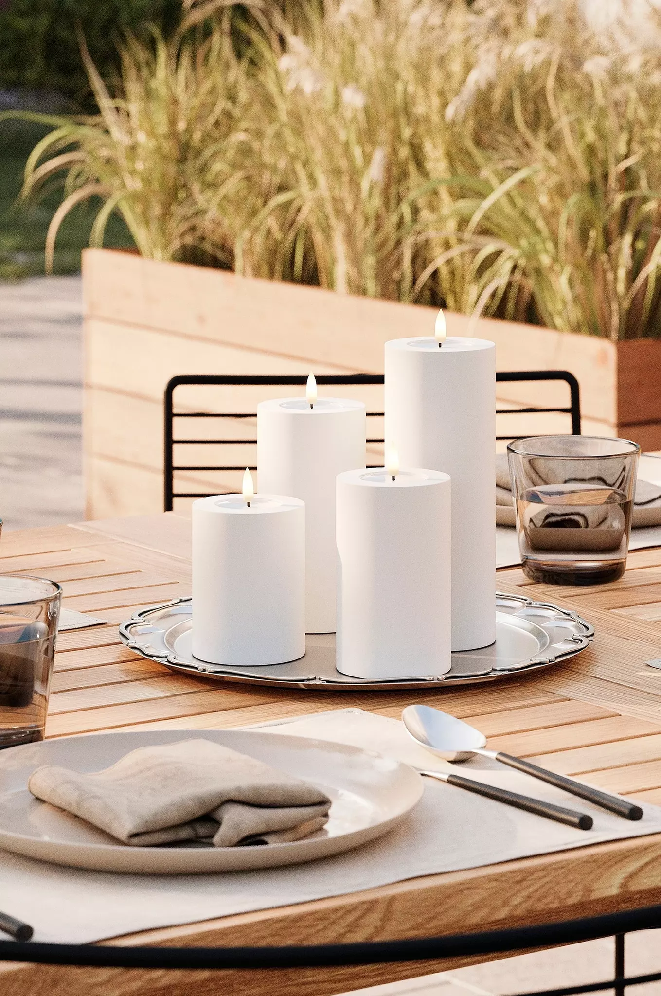 Detta LED blockljus i vit färg är utformat för både inomhus- och utomhusbruk och ger en säker, hållbar ljuskälla utan öppen låga. Tillverkat i robust HIPS-material, skapar ljuset en stämningsfull atmosfär i alla miljöer, vare sig det är i hemmet eller i trädgården. Specifikationer: Färg: Vit Material: HIPS Mått: 7,5x12,5 cm (exkl. flamman på 2 cm) Batteri: 2 x C (Ingår inte) Batteritid: 1500+ timmar Detta ljus är perfekt för långvarig användning, med en naturlig och varm belysning som lyser upp både inomhus- och utomhusmiljöer.