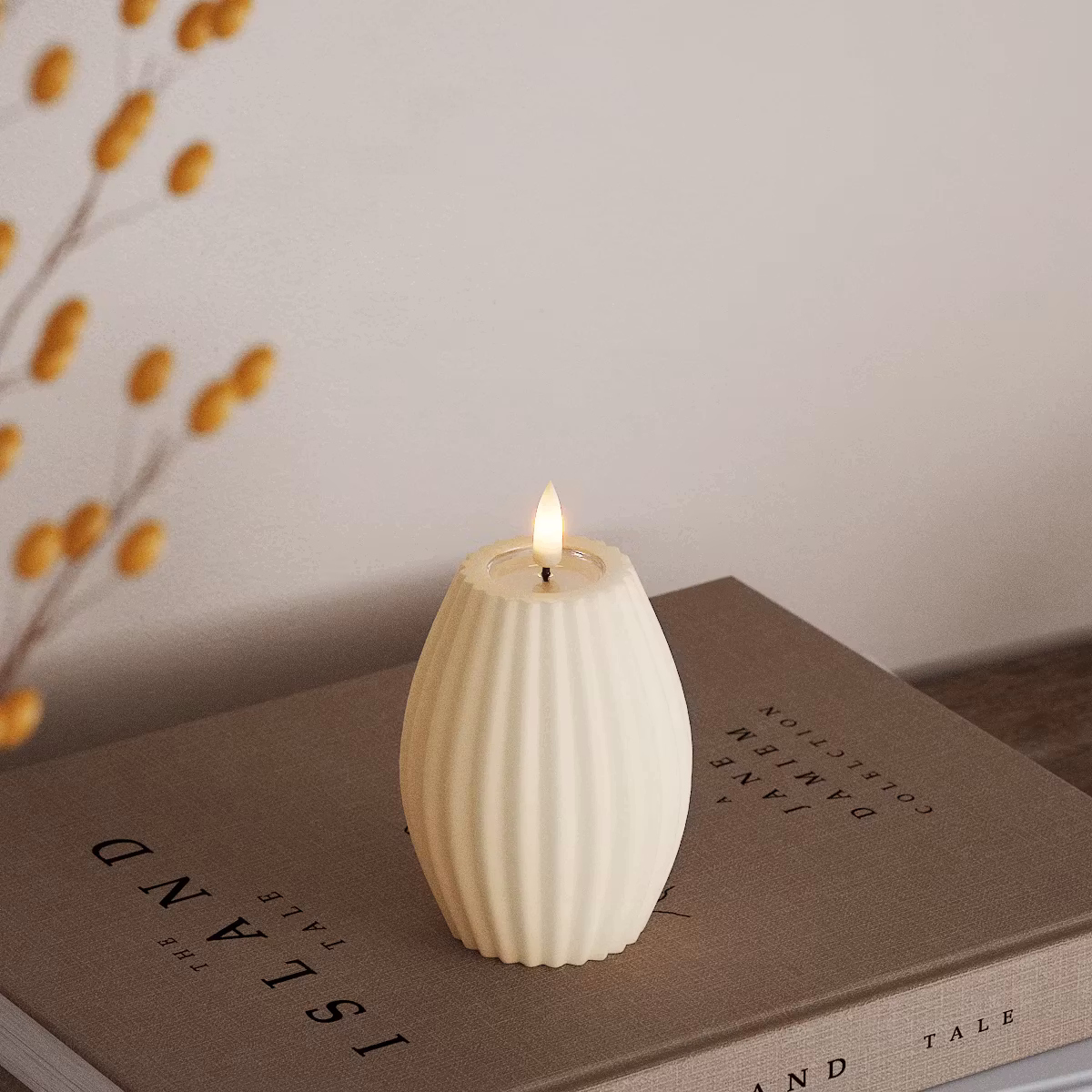 Skapa en sofistikerad och mysig stämning med detta LED blockljus i en vacker sandfärg. Med sin räfflade yta och eleganta design ger det ett mjukt och varmt ljus i ditt hem. Tillverkat av paraffinvax och resin för både hållbarhet och säkerhet, utan att behöva oroa dig för öppen låga. Färg: Cream Material: Paraffinvax / Resin Mått: 7,5x10 cm (exkl. flamman på 2 cm) Batteri: 2 x AA (Ingår inte) Batteritid: 300+ timmar Detta LED blockljus är det perfekta valet för att ge ditt hem en inbjudande atmosfär, och erbjuder långvarig belysning för alla tillfällen.