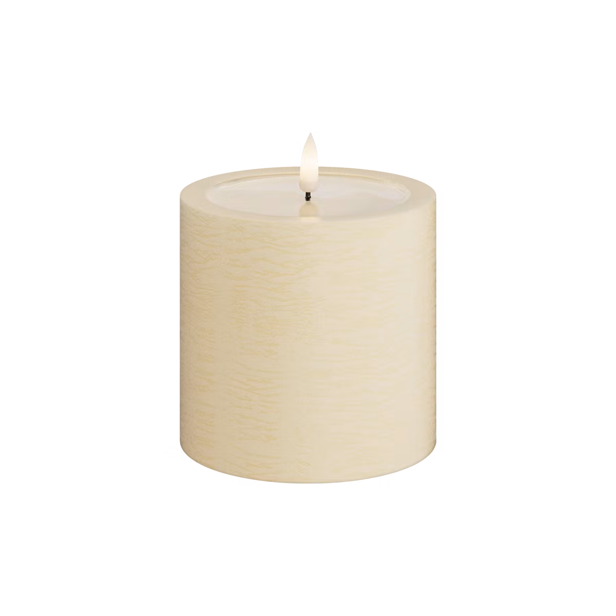 Skapa en varm och inbjudande atmosfär med detta vackra LED-blockljus från UNIQUE Candles. Med en handgjord, exklusiv och strukturerad yta erbjuder ljuset en verklighetstrogen WETLOOK™-design, vilket ger ditt hem en sofistikerad touch. Den patenterade 3D REAL FLAME™-teknologin skapar en imponerande ljuslåga som ger ett mjukt och behagligt sken. Detta ljus är både praktiskt och hållbart med en brinntid på upp till 1500 timmar. Du kan styra ljuset enkelt med en fjärrkontroll (säljs separat) och använda timerfunktionen för att ställa in ljuset precis som du vill. Mått: Ø 10 cm, Höjd 10 cm (exklusive flamman som är 2 cm) Material: Paraffinvax, plast Batterier: 2 x C-batterier (ingår ej) Bränntid: Upp till 1500 timmar Detta ljus är en perfekt dekoration för alla tillfällen och en utmärkt present för vänner och familj.