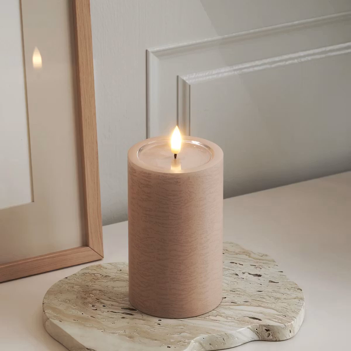 Skapa en lyxig atmosfär med detta eleganta LED-blockljus från UNIQUE Candles. Ljusets exklusiva handgjorda yta tillsammans med WETLOOK™-teknologin och den patenterade 3D REAL FLAME™ ger ett fantastiskt realistiskt intryck och en varm ljuslåga. Detta ljus har en imponerande brinntid på upp till 1500 timmar och en praktisk timerfunktion som kan styras via en separat fjärrkontroll, vilket ger dig enkel kontroll över belysningen. Mått: Ø 7,5 cm, Höjd 12,5 cm (exklusive flamman som är 2 cm) Material: Paraffinvax, resin Batterier: 2 x C-batterier (ingår ej) Bränntid: Upp till 1500 timmar För den som vill skapa en stämningsfull miljö med minimal ansträngning är detta LED-ljus det perfekta valet.