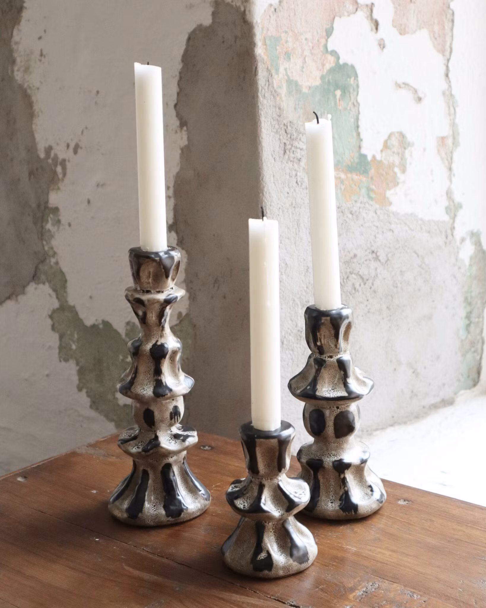Upptäck Tulip ljusstake, en unik och konstnärlig detalj som kombinerar minimalistisk design med naturlig skönhet. Den abstrakta formen på denna ljusstake gör den till ett iögonfallande konstverk, medan den handmålade finishen och den reaktiva glasyrens subtila färgskiftningar ger varje exemplar en personlig och oersättlig karaktär. Varje ljusstake är en hyllning till det handgjorda hantverket, och ingen är den andra lik. De vackra ränderna och de mjuka färgövergångarna skapar ett dynamiskt uttryck som både ger energi och lugn till ditt hem.
