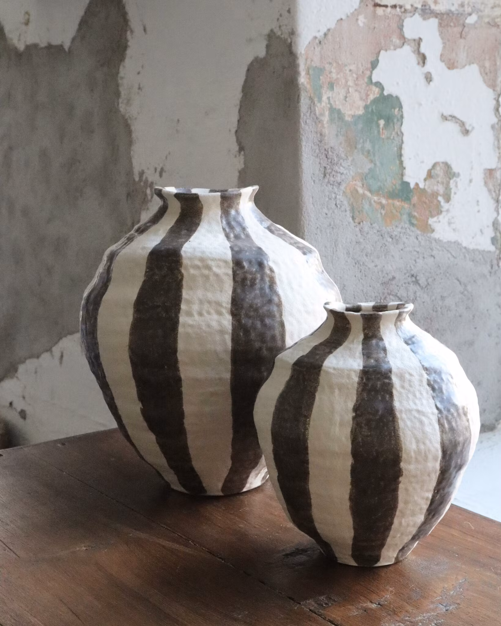 Ge ditt hem ett inslag av både elegans och lekfullhet med vår randiga Raia-vas - en detalj som förvandlar vilket rum som helst. Med sina mjuka, abstrakta former skapar denna vas en känsla av rörelse och liv, samtidigt som de tidlösa ränderna ger en känsla av klassisk stil. Placera vasen på ett bord eller en hylla och låt den bli en vacker inredningsdetalj. Oavsett om den står ensam eller i en grupp, tillför den en lekfull elegans som lyfter hela rummet. Den är lika vacker i sitt enkla uttryck som när den får fyllas med blommor och sprida färg och liv i din vardag.