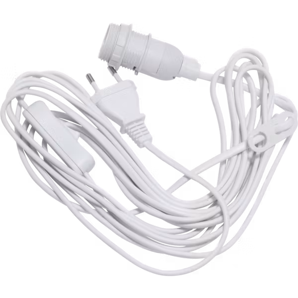 Komplett sladdställ, sladden är 5m och har brytare, regleras kortare efter behov. Kombinera upphänget med en snygg ljuskälla. Kan användas till pappersstjärnor.