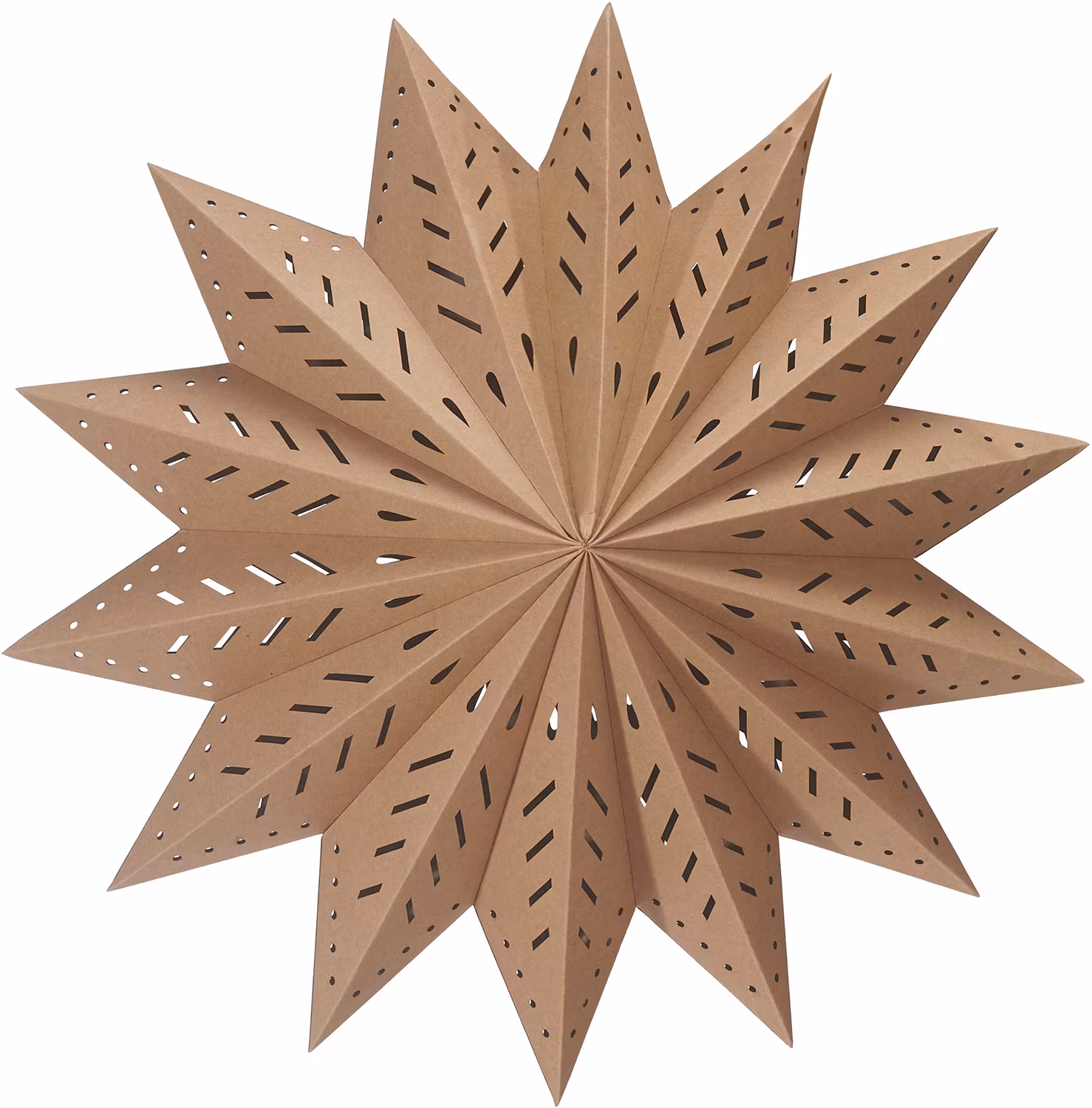 Julstjärna i papper av en lite kraftigare kvalitet med stansade hål som silar ljuset på ett vackert sätt. Stängs med snöre och snörstopp. Köp till E14 sladdställ och ljuskälla, max 25W. Höjd 50cm, bredd 50cm och djup 30cm
