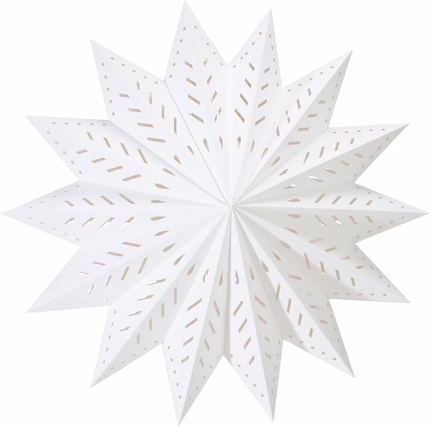 Julstjärna i papper av en lite kraftigare kvalitet med stansade hål som silar ljuset på ett vackert sätt. Stängs med snöre och snörstopp. Köp till E14 sladdställ och ljuskälla, max 25W. Höjd 60cm, bredd 60cm och djup 37cm