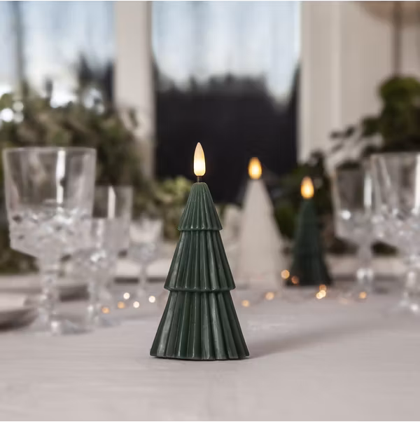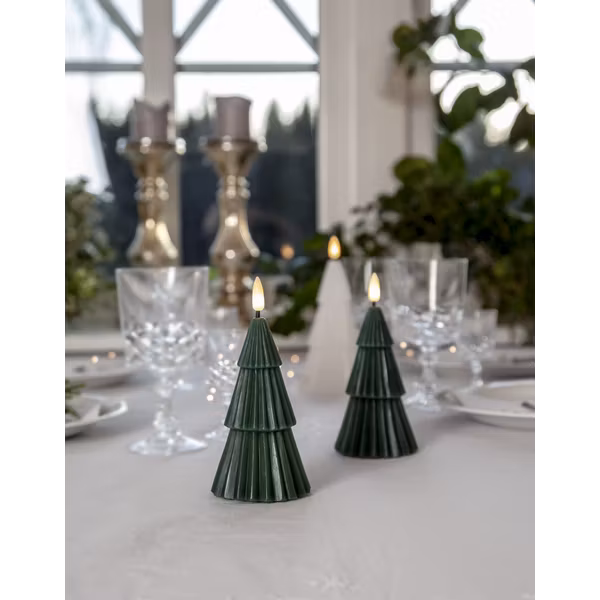 Flamme Grany är ett blockljus i form av en stiliserad gran. Den lyser med ett varmvitt sken i toppen med den naturtrogna lågan Flamme. Ljuset är cirka 7cm i diameter och höjden 12cm för vax delen och cirka 15cm totalhöjd med lågan. Detta ledljus blir en vacker dekoration, både ensam och i grupp ihop med andra ljus. Den har timerfunktion. 6 h på, 18 h av, repeterande, och ljuset lyser med en vacker realistisk låga i varmvitt.