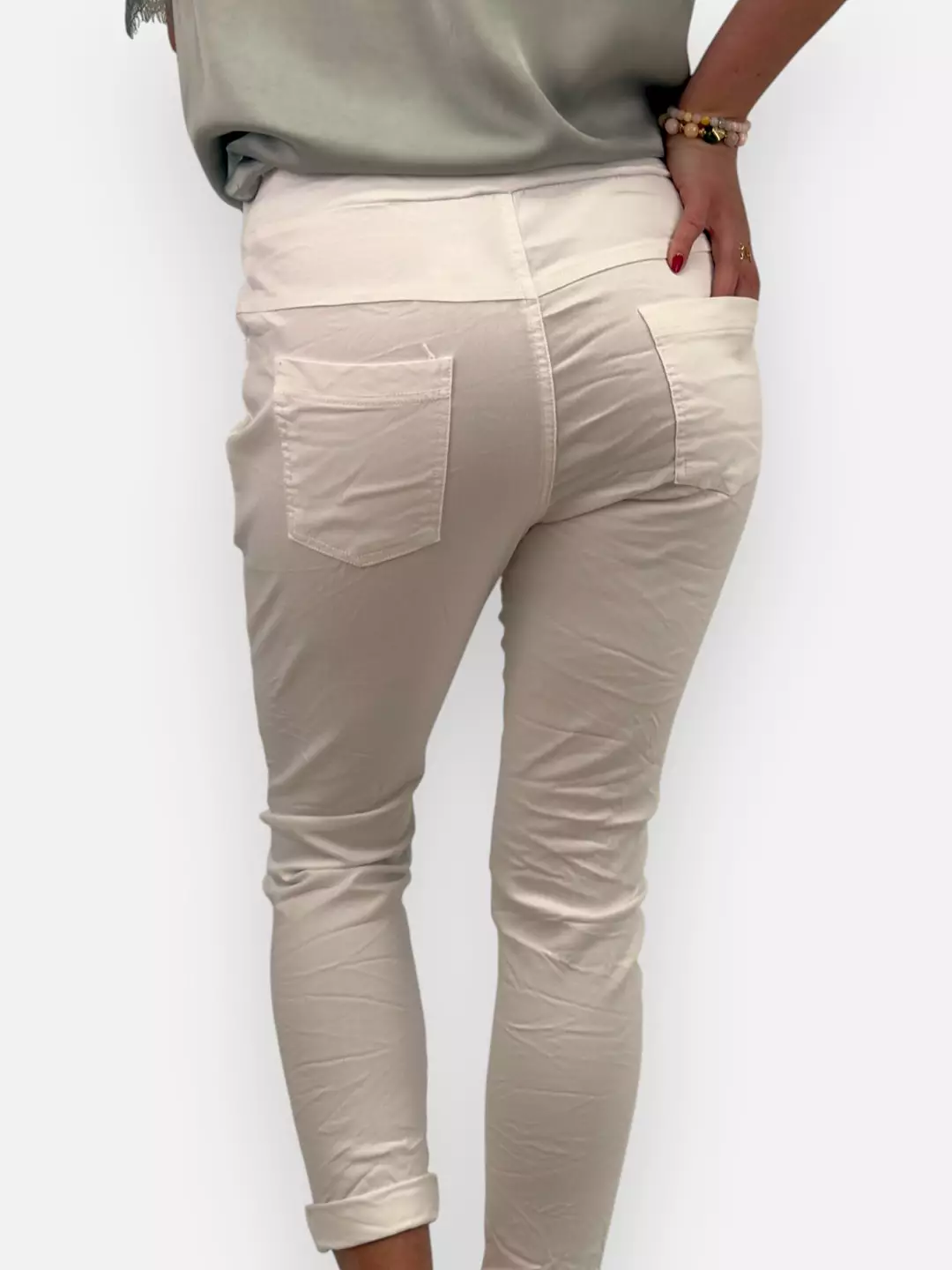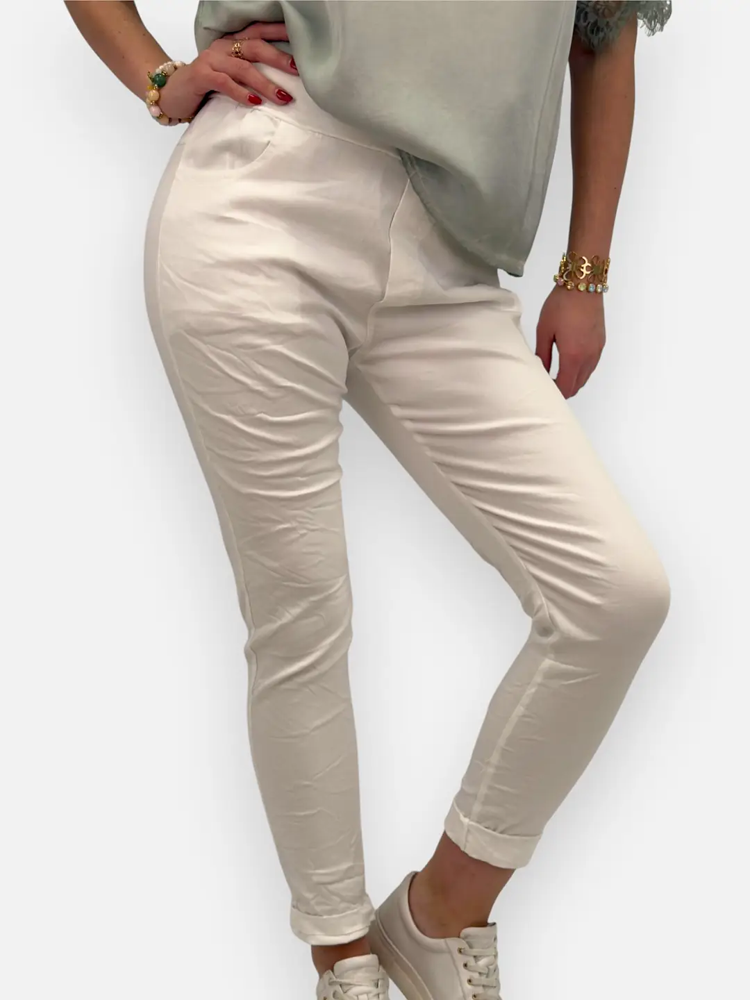 Embra är våra “magiska” byxor – och ja, de lever upp till namnet. Superstretchiga och följsamma med en passform som formar sig efter dig utan att kännas tight. De har fickor både fram och bak, sydd gylf för en klassisk look och en midja som sitter bekvämt hela dagen. Embra är byxorna du tar på dig en gång… och sedan undrar hur du någonsin klarade dig utan.