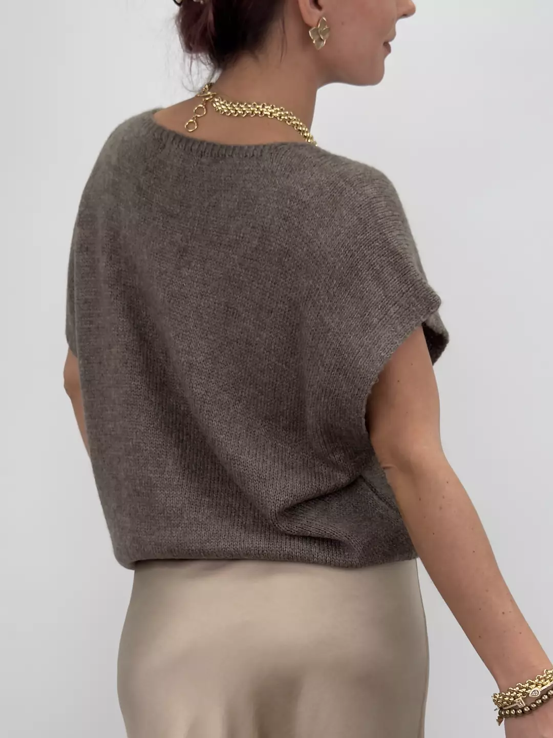 Sanna är en modern stickad kofta med v-ringning, kort ärm och dekorativa guldknappar framtill. Den avslappnade passformen gör den enkel att styla över en klänning, topp eller som ett fristående plagg – lika snygg som bekväm.