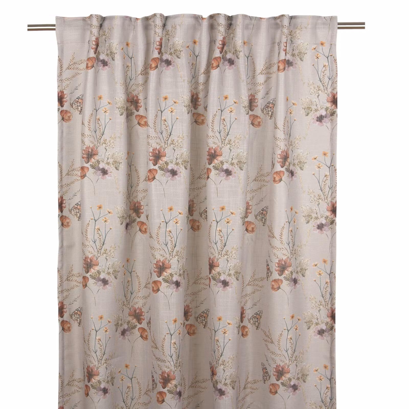 Gardiner i jordnära färger, som en hyllning till naturen. Tyget är tunt, vilket gör att dagsljuset skapar en varm och inbjudande atmosfär i rummet. Gardinerna g