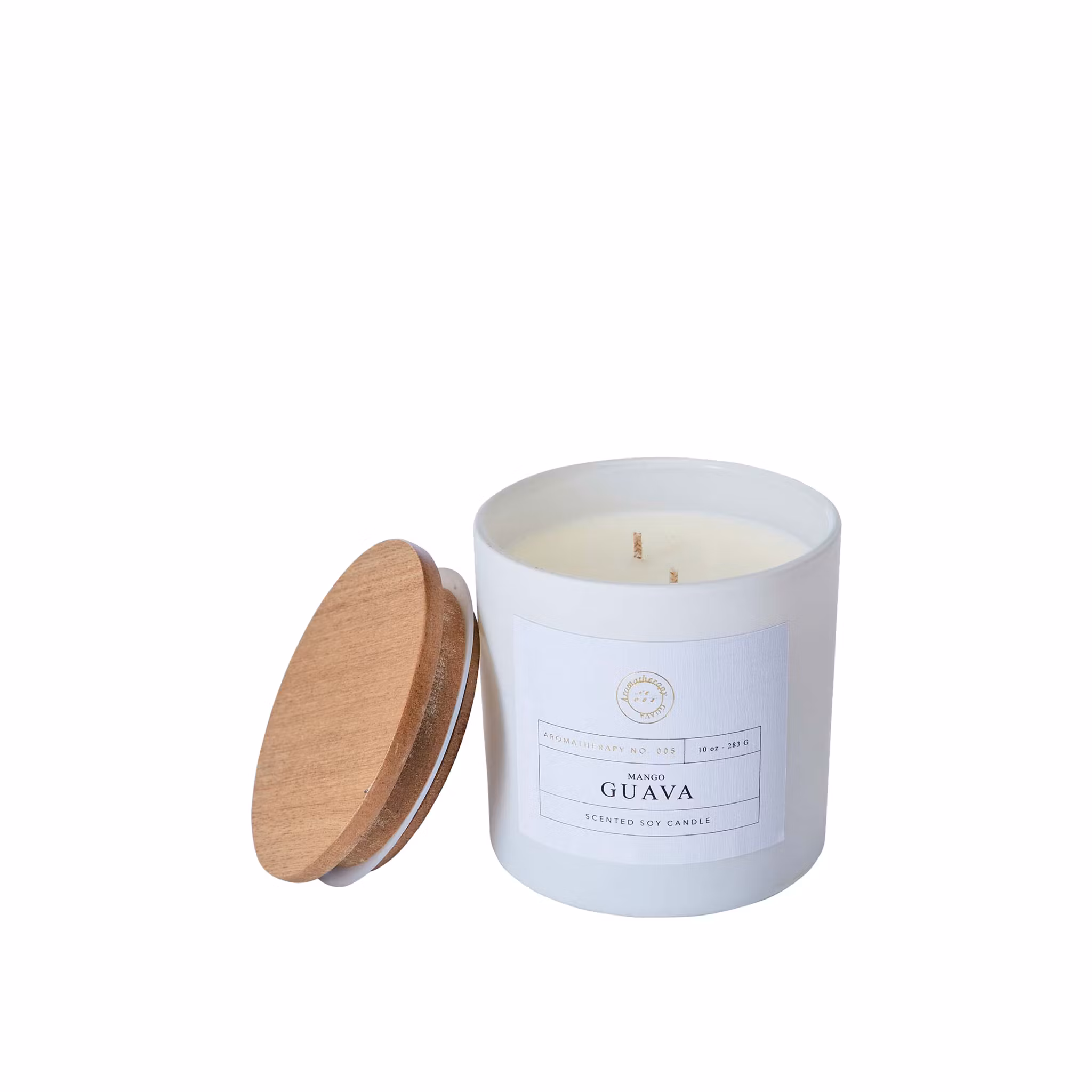 ProduktdetaljerSerie: YasuFärg: VitMått: 9x9 cm, Ø 8Material: Vax, Soja, Glas, Trä