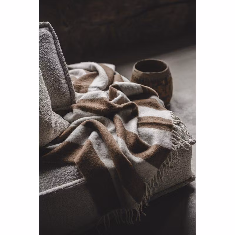 Zara Blockstripe i beige och brun är pläden som kombinerar tidlös design med naturlig värme. De breda blockränderna i mjuk beige och jordnära brun skapar ett harmoniskt uttryck som känns både klassiskt och inbjudande. Perfekt för att ge soffan en varm ton eller för att lägga över sängens fotände som en stilfull detalj. Pläden är vävd i en blandning av material där 50 % ull ger naturlig värme och mjukhet. Resultatet är en filt som inte bara värmer under kyliga kvällar, utan också blir en vacker inredningsdetalj i hemmet. De tvinnade fransarna längs kanterna tillför en lekfull touch och förstärker den hantverksinspirerade känslan. Zara Blockstripe är helt enkelt en pläd som förenar funktion och stil - och snabbt blir en vardagsfavorit.