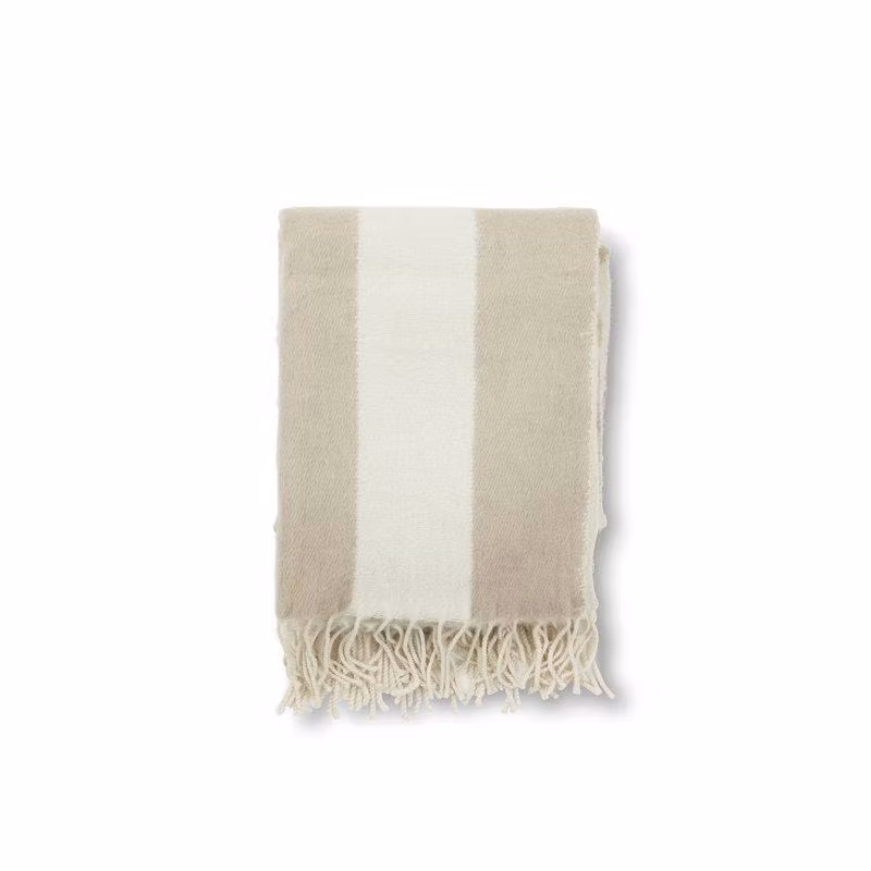 Zara Blockstripe är pläden som kombinerar grafisk design med värmande komfort. De breda blockränderna i jordnära beige och off-white skapar en harmonisk men samtidigt uttrycksfull känsla som gör sig lika fin i soffan som över sängens fotände. Pläden är vävd i en blandning av material där 50 % ull bidrar med naturlig värme och mjukhet. Resultatet är en inbjudande filt som värmer under kyliga kvällar och samtidigt fungerar som en stilfull detalj i hemmet. De tvinnade fransarna längs kanten ger Zara Blockstripe en lekfull finish och förstärker den hantverksinspirerade känslan. En pläd som är både funktionell och dekorativ - och som snabbt blir en favorit i vardagen.