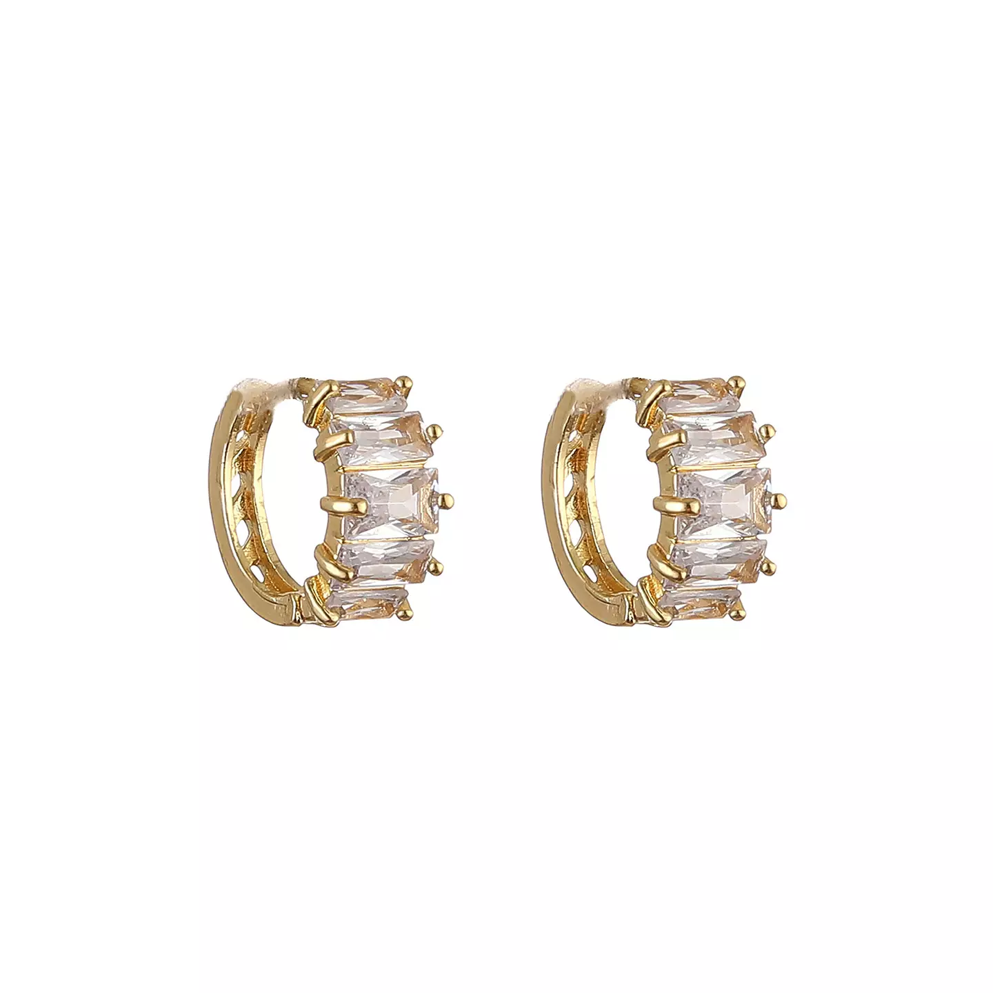 Så snygga guldfärgade örhängen med gnistrande "stenar".