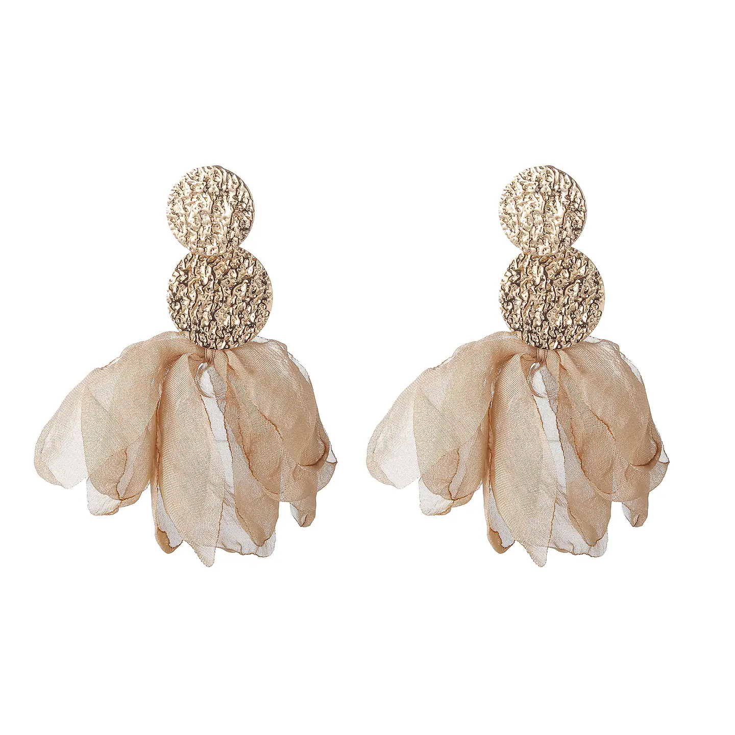 Stora, uttrycksfulla örhängen med struktur och mjuka tygliknande detaljer som ger en konstnärlig och feminin känsla. Ett statement-smycke som drar blickarna till sig.