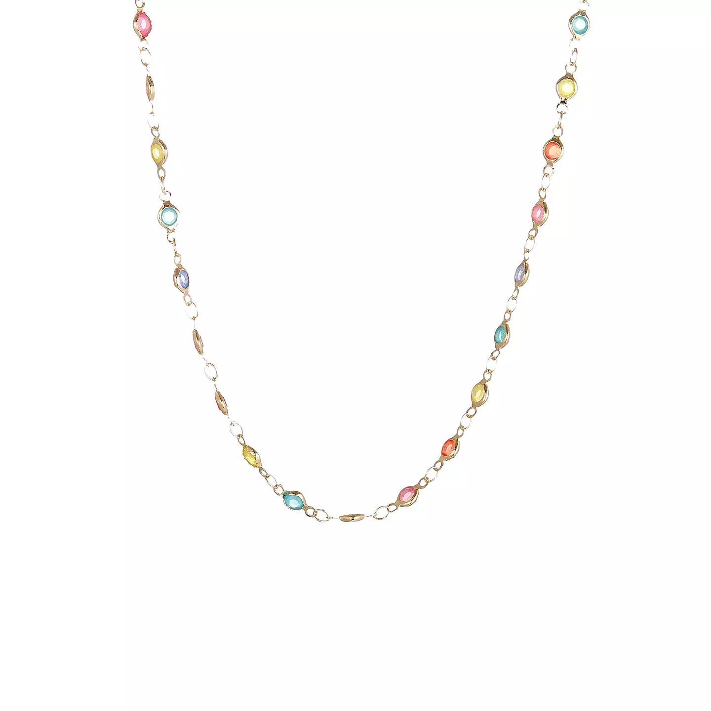 Ett elegant kort halsband med små gnistrande stenar placerade tätt längs den tunna kedjan. Den luftiga designen ger ett lätt och levande uttryck som ramar in din stil med subtil lyster – perfekt både ensam och i lager med andra favoriter.