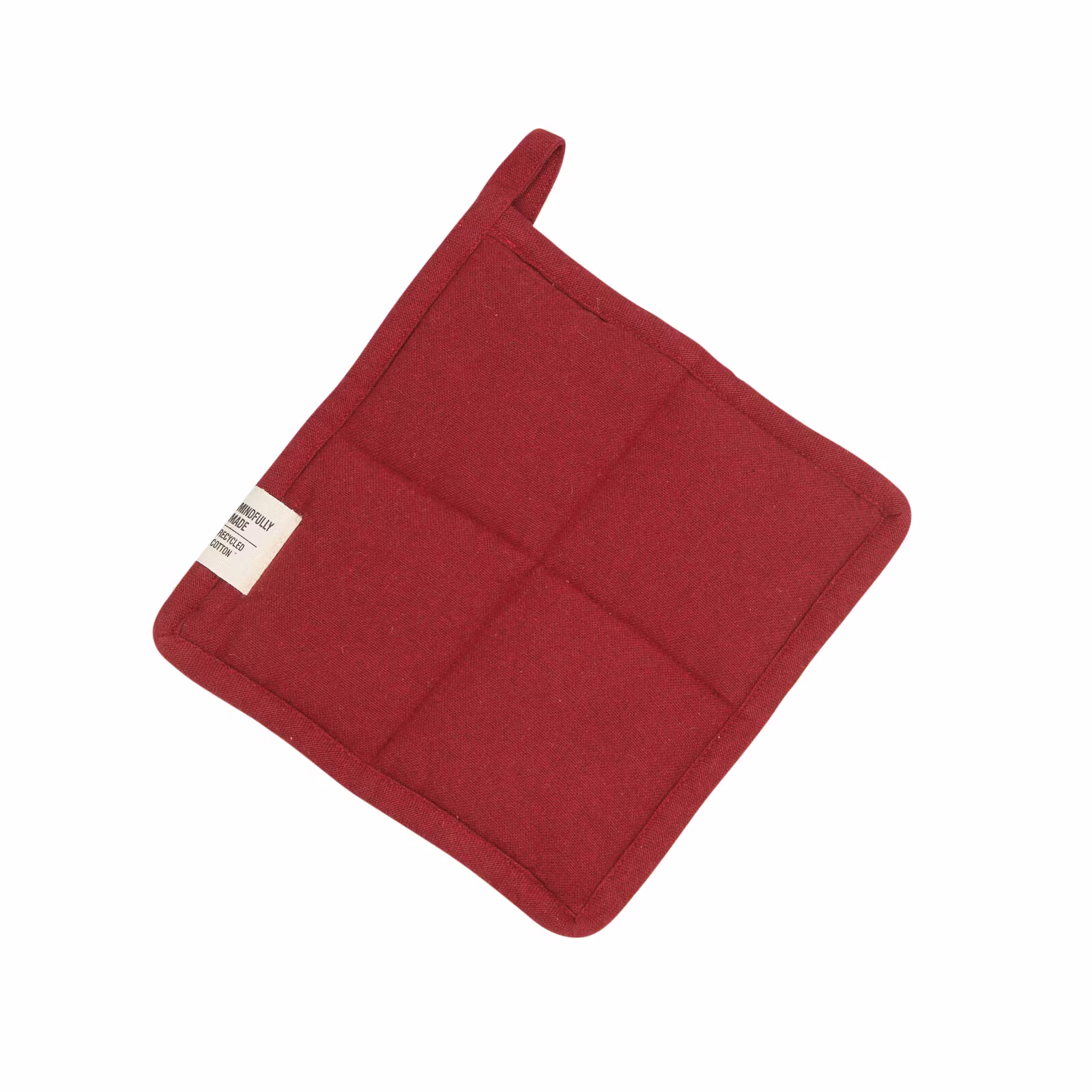 Den här grytlappen är tillverkad med omsorg för både miljön och din köksstil. Den är tillverkad av en blandning av återvunnen bomull och återvunnen polyester, v