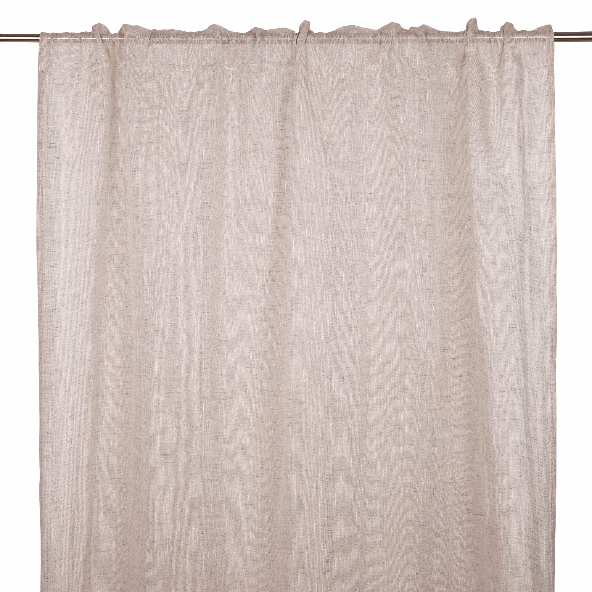 Linnegardin tillverkad av 100 % lin med en otroligt vacker, levande struktur som framhäver materialets naturliga karaktär. Gardinen är ofärgad, vilket låter linnets naturliga nyanser träda fram. De har påsytt multiband och kan hängas upp med rynkbandskrokar, fingerkrokar, kanal samt dold hälla.