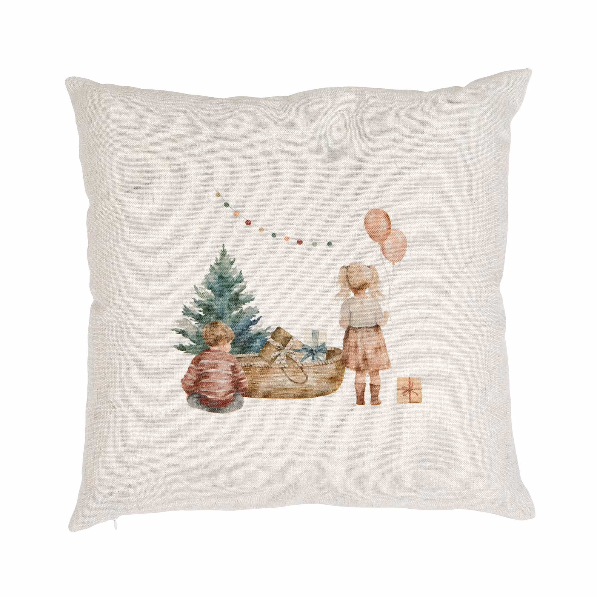 Kuddfodral i polyester/lin blandning med en linfärgad botten och med ett levande och lekfullt mönster som andas gammaldags charm. Passar lika bra i ett barnrum, som i en mysig läshörna.